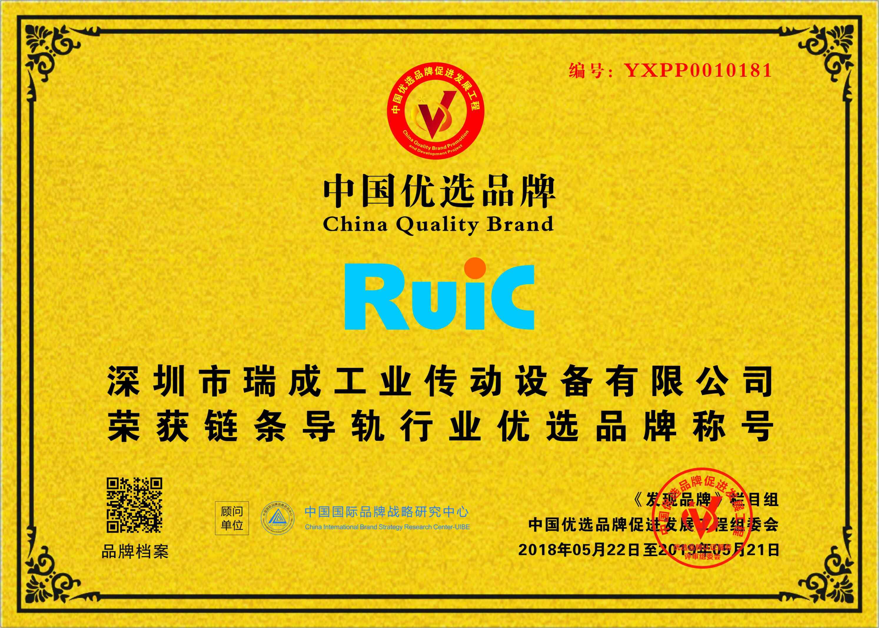 Ruic瑞成榮獲鏈條導軌行業優先品牌稱號